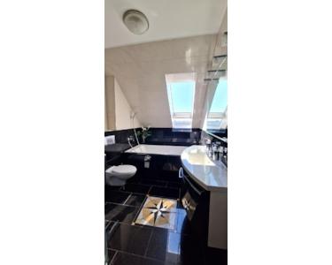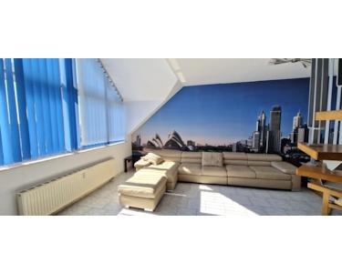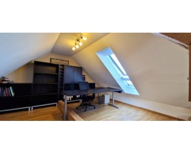 Im Obergeschoss befindet sich ein großzügiger Arbeitsbereich, kleiner Fitnessbereich, ein Gästesofa sowie eine Abstellkammer. Es besteht Ausbaupotenzial, dank der großzügigen Bodenfläche kann das Obergeschoss - ähnlich wie andere Wohnungen im Gebäudekomplex - in mehrere Zimmer mit Bad umgestaltet werden.