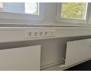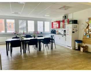 Große Fensterfronten sorgen in allen Bereichen für viel Tageslicht und ein angenehmes Arbeitsumfeld. Ein Aufzug im Gebäude gewährleistet barrierearmen Zugang.