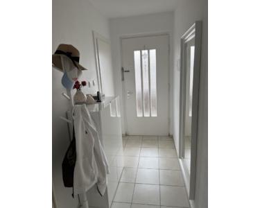 Im Flur befindet sich ein praktischer Einbauschrank, der zusätzlichen Stauraum für Dinge wie Staubsauger oder Haushaltsutensilien bietet.