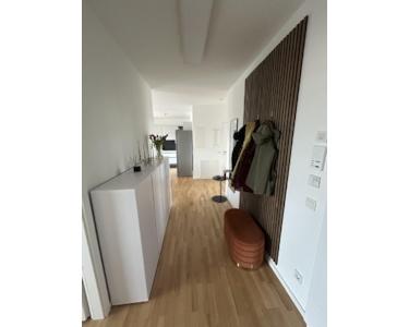 Diese luxuriös ausgestattete 3-Zimmer-Wohnung mit ca. 86 m² Wohnfläche befindet sich im 4. Obergeschoss eines modernen Wohnquartiers (Baujahr 2021) in der Neuen Mitte von Graben-Neudorf. Ein Aufzug erleichtert den Zugang zur barrierefreien Wohnung, die über ein großzügiges Raumangebot und bodentiefe, vierfachverglaste Fenster mit elektrischen Jalousien verfügt.