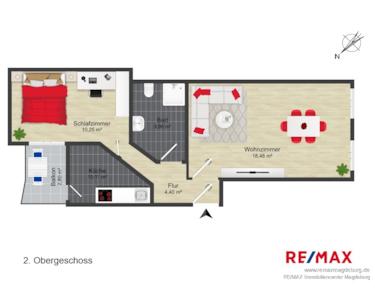 Die Wohnung im 2.Obergeschoss ist wie folgt aufgeteilt: