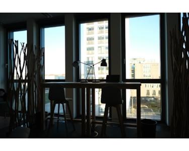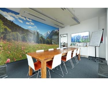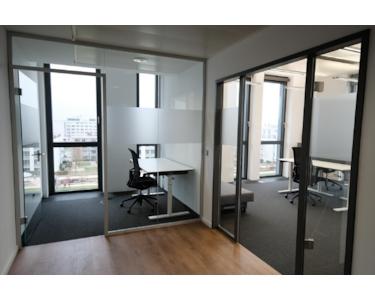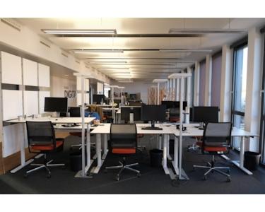 •14 höhenverstellbare Schreibtische, ergonomische Stühle, Meeting-Tische, Flatscreen und Silent-Telefonbox,