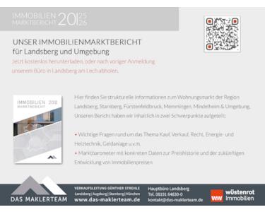 Angebot im qualifizierten Makler-Alleinauftrag. Bei allen Angaben handelt es sich um Angaben des Eigentümers bzw. Dritter. Trotz regelmäßiger Prüfung von Daten, Bildern und Informationen übernehmen wir keine Haftung für die Richtigkeit der Angaben. Ebenso wenig für die Verfügbarkeit des Angebotes bei Vermietung oder Verkauf. Die Informationen in Exposés und auf unseren Webseiten ersetzen keine persönliche Beratung! Wir behalten uns das Recht vor, Änderungen oder Ergänzungen der bereitgestellten Informationen jederzeit vorzunehmen. Copyright © aller Texte und Bilder: Wüstenrot Immobilien Landsberg.