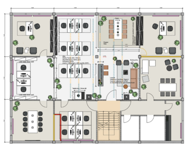 - Flexible Raumaufteilung: Einzelbüros und Großraumbüros mit Möglichkeit zur weiteren Unterteilung