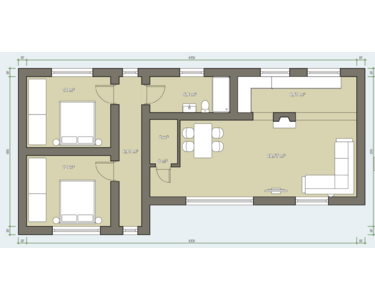 Das pflegeleichte Grundstück ist mit einem Bungalow bebaut, der 1935 in massiver Bauweise errichtet wurde und Ihnen eine Wohnfläche von 77m² bietet. Die Wohnfläche verteilt sich auf zwei Schlafzimmer, ein Badezimmer, ein Gäste-WC und einen sehr hellen Wohnzimmer samt Küche und Essbereich mit Kamin. Ein viertes Zimmer könnte man aus dem großen Wohnbereich gewinnen.