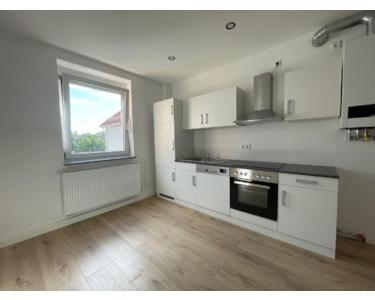 Sie betreten die frisch sanierte Wohnung über den Flur, in welchem Sie ausreichend Platz für eine Garderobe vorfinden. Von hier gelangen Sie zunächst in die geräumige Küche welche mit einer Einbauküche ausgestattet ist.