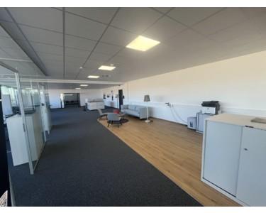 Moderne, helle Bürofläche mit großen Fensterfronten