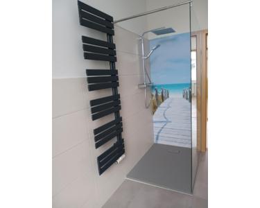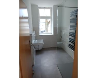 Hervorzuheben sind die bodengleiche Dusche, der Handtuchheizkörper und die Fußbodenheizung im Bad. Alle sanitären Elemente wurden im Rahmen der Sanierung erneuert.