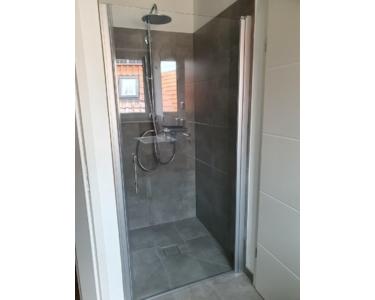- modernes Tageslichtbad mit Regendusche, Waschbecken und WC
