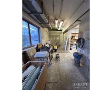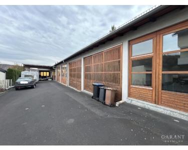 Der Gewerbeteil (Baujahre 1968 & 1987) bietet insgesamt ca. 631,5 qm Nutzfläche und umfasst eine Lager- bzw. Hallenfläche, eine teilunterkellerte Werkstatt, einen Ausstellungsbereich sowie einen zusätzlichen Anbau.