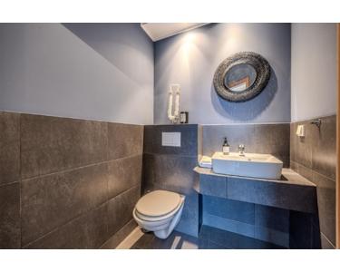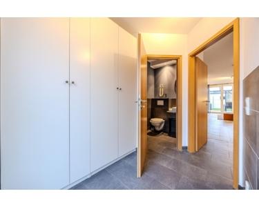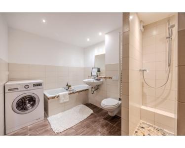 Das moderne Badezimmer auf dieser Ebene ist mit Badewanne und separater Dusche ausgestattet. Zusätzlich steht eine Abstellkammer zur Verfügung, die praktischen Stauraum für Dinge des täglichen Bedarfs bietet.