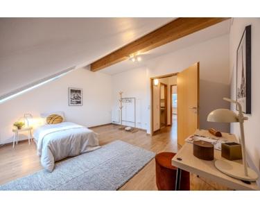 Vom Dachgeschoss aus haben Sie zudem Zugang zum Dachboden, der zusätzlichen Stauraum bietet und sich perfekt zur Unterbringung seltener genutzter Gegenstände eignet – eine praktische Erweiterung des Wohnraums, die Flexibilität und Ordnung schafft.