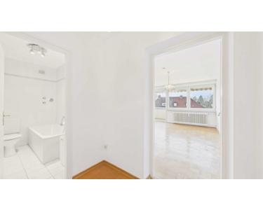 Vom Flur aus gelangen Sie in das Herzstück der Wohnung: das großzügige, lichtdurchflutete Wohnzimmer, das sich flexibel möblieren lässt und viel Raum für individuelle Gestaltungsideen bietet.