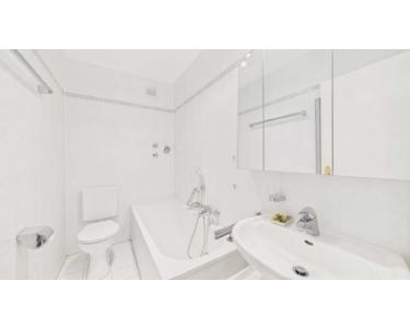 Das Badezimmer präsentiert sich in einem gepflegten Zustand, ist praktisch eingerichtet und mit einer Badewanne ausgestattet.