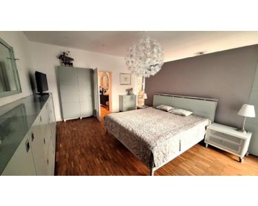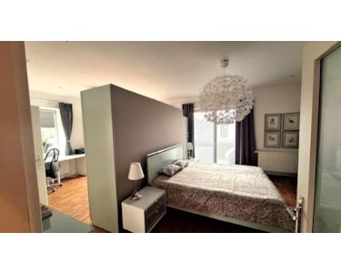 Diese hochwertig und voll möblierte sowie luxuriös ausgestattete 1,5-Zimmer Wohnung mit ca. 90 m² Wohnfläche befindet sich im 2. Obergeschoss eines gepflegten Mehrfamilienhauses in Rosenheim. Ein Aufzug erleichtert den Zugang, und die Wohnung ist barrierefrei gestaltet. Die Wohnung verfügt über eine sehr große und helle Wohnküche mit einer hochwertigen Luxus-Einbauküche. Das Badezimmer ist ebenso sehr großzügig gestaltet und beinhaltet ein Doppelwaschbecken, eine zentrale Badewanne und zusätzliche eine Dusche. Der große Wohnraum ist durch einen großen Stauraumschrank in ein Schlafzimmer und ein komfortables Arbeitszimmer aufgeteilt. Bei Interesse könnte im Arbeitszimmer auch eine Couch hineingestellt werden (statt kleinem Schrank), so dass ein Wohnzimmer integriert wäre. Sowohl das Schlafzimmer als auch das Arbeits-/Wohnzimmer haben direkten Zugang zum Südbalkon (mit Blick in den grünen Innenhof und teilweisen Bergblick). Der große Flur mit ebenso großem Einbauschrank sowie der Wirtschaftsraum mit Waschmaschine, Trockner und Regal sorgen dafür, dass alle Gegenstände gut verstaut werden können und alles sehr funktional ausgestattet ist. Alle Zimmer haben integrierte und dimmbare Spots in der Decke. Beleuchtungssystem mit Spots an der Decke. Zwei Kellerräume können nach Absprache mitbenutzt werden. Ein Außenstellplatz ist in der Miete enthalten. Fahrradabstellmöglichkeiten befinden sich im gepflegten Innenhof. Haustiere sind nach Absprache erlaubt. Die Verfügbarkeit ist sofort gegeben.