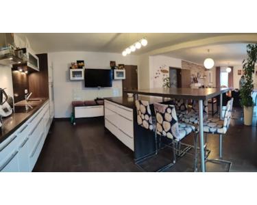 Die durchdachte Raumaufteilung umfasst mehrere einladende Zimmer, die durch ihre Funktionalität und das geschmackvolle Design überzeugen. Eine moderne Einbauküche, die stilvoll in den Wohnbereich integriert ist, macht Kochen zum Vergnügen.