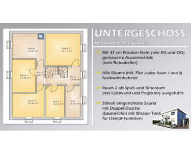 Ein besonderes Highlight ist die luxuriöse Sauna mit Doppeldusche, die sich perfekt für entspannte Abende eignet. Das elegante Elternbad mit Eckbadewanne bietet einen Hauch von Wellness im eigenen Zuhause. Ein zusätzliches Gäste-WC mit Dusche rundet das Raumangebot ab.