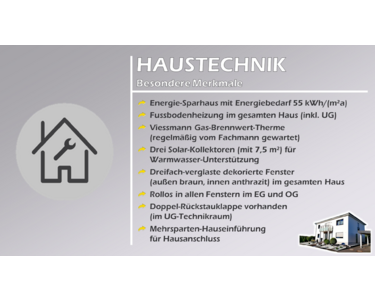 Niedriger Energiebedarf (62,4 kWh/m²a) und zusätzliche Energietechniken wie Solarthermie