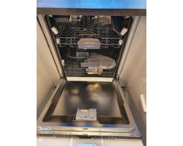 Einbauküche komplett mit Siemens-Geräten (Induktion, Backofen, Microwelle, Kühl-/Gefrierschrank, Geschirrspüler, Waschtrockner).