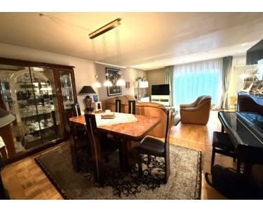 Im Obergeschoss befindet sich ein großes Wohn-/Esszimmer (61qm) mit Zugang zur teils überdachten und im Sommer kaum einsehbaren Dachterrasse (Südwest), ein Schlaf- mit angrenzenden Ankleidezimmer, ein Duschbad mit WC, Einbauküche sowie zwei weitere Zimmer.