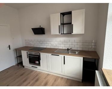 In der großen Küche wurde eine neue Einbauküche mit Herd und Ceranfeld, einem Dunstabzug sowie einem Geschirrspüler eingebaut. Hier ist neben genügend Platz für einen individuellen Kühl-/Gefrierschrank auch noch Platz für einen Esstisch.
