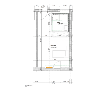 Die einzelnen Zimmer bzw. Rollstuhlzimmer verfügen über eine Größe von ca. 24 m² bis 28 m². Zuzüglich der allgemeinen Nutzungsflächen ergibt sich eine Nutzfläche von bis zu 66 m².