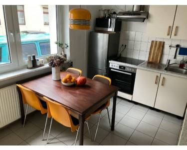 Vom einladenden Wohnzimmer aus gelangen Sie in die danebenliegende Küche. Diese kann vom Vermieter zur Nutzung überlassen werden, oder Sie bringen eine eigene Küche mit.