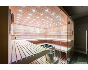 Im Untergeschoss erwartet Sie ein eleganter Gästebereich mit zwei Zimmern, Pantryküche und Duschbad. Neben Weinkeller, Hauswirtschaftsraum und großen Abstellflächen begeistert vor allem der exklusive Wellnessbereich mit Sauna und Fitnessraum – ein privater Spa-Bereich für Ruhe und Balance.