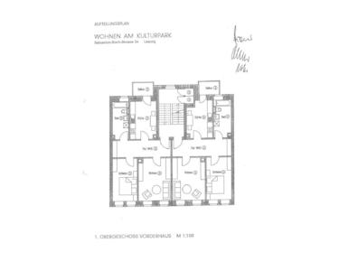 Die im ersten Obergeschoss des Vorderhauses gelegene Wohnung verfügt über ca. 67,57 m² Wohnfläche, welche sich auf 2 Zimmer, eine Küche, ein Tageslichtbad mit Wanne und einen Balkon mit Blick in den hübsch gestalteten Innenhof verteilen. Alle Räume sind vom Flur zu betreten.
