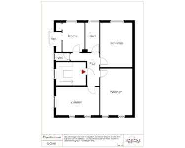 Auf ca. 82 qm erwartet Sie eine durchdachte Aufteilung: ein zentraler Flur, eine helle Küche mit Veranda als Herzstück sowie drei flexibel nutzbare Zimmer.