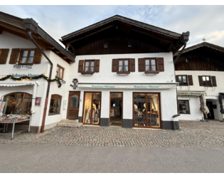 Das Ladenlokal befindet sich in der Fußgängerzone (von 6 bis 10 Uhr befahrbar) von Mittenwald.