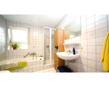 Das Tageslicht-Badezimmer ist komplett gefliest und in Weiß gehalten. Ausgestattet mit einer Badewanne sowie einer zusätzlichen Duschkabine, einer Toilette und einem Waschbecken wartet es darauf, Sie bei jedem Start in den Tag begleiten zu dürfen.
