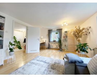 Die 2,5 Zimmer Wohnung mit Wohnküche und eigenem, sonnigen Südbalkon befindet sich im 1. Obergeschoss eines kleinen 2-geschossigen Mehrfamilienhauses.