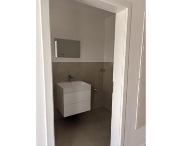 Die Wohnung ist mit bereits installierten Deckenlampen ausgestattet. Das Badezimmer verfügt über moderne WC-Schränke inklusive Spiegel. Zudem ist eine gepflegte Einbauküche vorhanden, die dem Mieter zur Nutzung zur Verfügung steht.