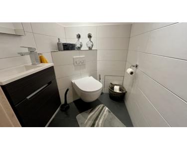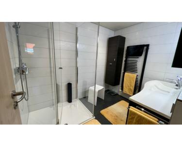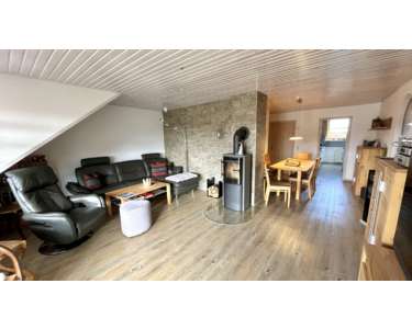 Besonders hervorzuheben sind das 2016 modern gestaltete Badezimmer mit großer Dusche sowie dem separaten WC, die beide den heutigen Ansprüchen gerecht werden. Die vor ca. 14 Jahren eingebaute Küche befindet sich in einem sehr guten Zustand. Die Besonderheit ist hier zusätzlich die Vorratskammer mit Kühlaggregat! Der offen gestaltete Wohn- und Essbereich bietet trotz der Schräge ausreichend Platz ohne sich eingeengt zu fühlen. Der Holzofenkamin sorgt für zusätzliche Gemütlichkeit und Wohlfühl-Atmosphäre in kühleren Monaten.