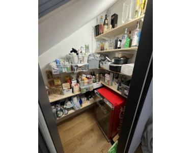 Beim Betreten der Wohnung im 2. Obergeschoss gelangen Sie in den Dielenbereich, von dem aus Sie direkt das modern geflieste Gäste-WC mit Fenster sowie eine praktische Abstellkammer unter der Treppe erreichen.