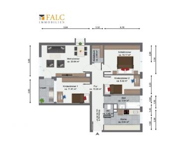 Diese charmante 4-Zimmer-Wohnung mit ca. 82,40 m² Wohnfläche überzeugt durch ein durchdachtes Wohnkonzept mit viel Licht, Komfort und einer behaglichen Atmosphäre. Der großzügige Wohn- und Essbereich öffnet sich zur sonnigen Loggia, die zum Entspannen im Freien einlädt und das Wohngefühl zusätzlich aufwertet.