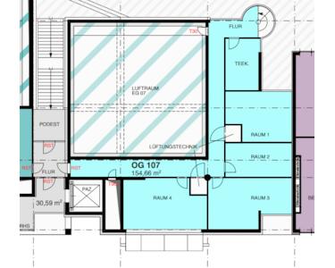 - flexible und effiziente Raumaufteilung vom Einzelbüro bis hin zum Großraum-Loftbüro