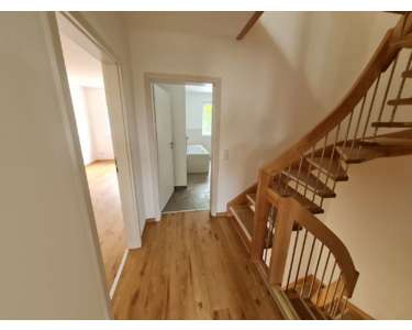 Über die stilvolle Wendeltreppe erreichen Sie die beiden Obergeschosse. Diese bieten mit insgesamt vier Schlafräumen und zwei modernen Tageslichtbädern reichlich Platz für individuelle Wohnwünsche und Rückzugsorte für jedes Familienmitglied.