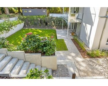 Im Außenbereich befinden sich die neu gestaltete Gartenanlge, die Terrassen, die Balkone sowie der