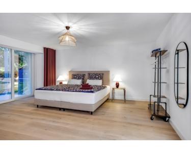 Eine großzügige Einbauküche mit hochwertigen MIELE Geräten, verspiegelte Fenster zur Straßenseite, direkter Wasserzugang am eigenen Privatstrand, hochwertige Bäder mit extra großen Fliesen, eine digitale Schließanlage und viele weitere Extras machen diese unvergleichliche Luxusimmobilie zu einem Wohntraum, der keine Wünsche offen lässt.