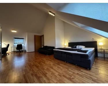 Das 2. Obergeschoss beherbergt ein besonders großzügiges Schlafzimmer mit Doppelbett, großem Kleiderschrank, Fernseher sowie zwei vollwertigen Arbeitsplätzen (jeweils mit Schreibtisch und Stuhl). Darüber hinaus befindet sich auf dieser Etage ein separater Wäscheraum mit dem Heizkessel.