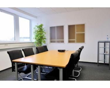 Ausstattung. Büro mit Einbauküche. LAN-Steckdosen. Kleiner Serverschrank.