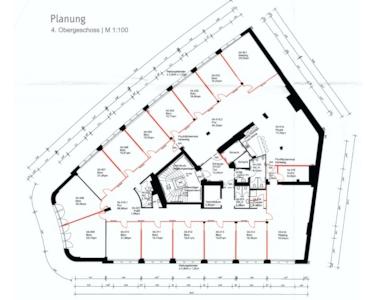 Jeweils abgeschlossene Büroeinheit mit unterschiedlich großen Räumen, die jedoch nach individuellen Mieterwünschen je unabhängig voneinander unterteilt werden können, Teeküche, getrennte WC-Anlage, Archiv.