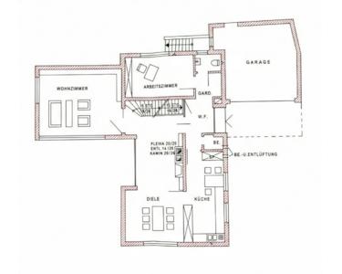 Im Erdgeschoss treffen Sie auf eine offene, lichtdurchflutete Wohndiele, die mit ihrem Kaminbereich und dem angrenzenden Essbereich das kommunikative Herzstück des Hauses bildet. Von hier aus gelangen Sie in das separate Wohnzimmer, das eine gemütliche Rückzugsmöglichkeit bietet, und mit den breiten Fensterfronten zum Blick in den Außenbereich einlädt. Der Garten und die Terrasse mit Südausrichtung sind ein absolutes Highlight mit vielen Möglichkeiten, die Grünflächen und Nutzbeete ganz individuell nach Ihren Vorstellungen mit Leben zu füllen. Weiterhin befindet sich im Eingangsbereich ein Gäste- oder Bürozimmer mit angrenzendem Gäste-WC, und direkt neben der Küche noch zwei weitere kleine Nutzräume bspw. für Speise- oder Vorratskammern.
