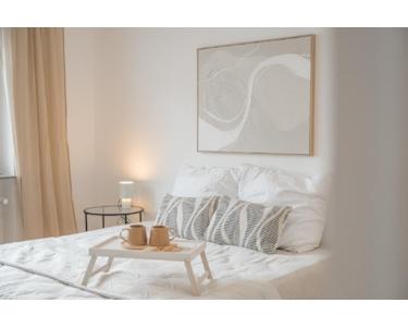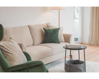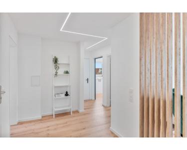 Glatte Wände und Decken, hochwertiger Vinylboden, erneuerte Elektrik und neue Wasserleitungen sowie moderne Beleuchtungselemente schaffen ein stilvolles und zeitgemäßes Wohnambiente.