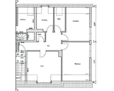 Durch den Flur gelangt man in die sehr große Diele, von welcher das Tageslichtbad mit Dusche/Wanne und Wohnbereich sowie Kinder- und Schlafzimmer abzweigen. Durch die großen Fenster gelangt viel Licht in die Räumlichkeiten