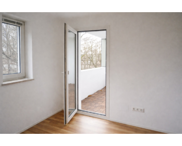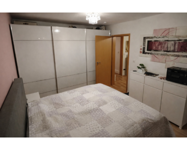 Das Schlafzimmer liegt ebenfalls ruhig und bietet ausreichend Platz für Schrank und Doppelbett. Die verglaste Loggia erweitert den Wohnraum ins Freie und sorgt für zusätzliche Aufenthaltsqualität.