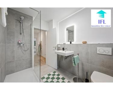 Badezimmer: Das renovierte Bad überzeugt durch eine hochwertige Ausstattung mit modernen Sanitäranlagen, neuen Fliesen und einer praktischen Dusche. Für zusätzlichen Komfort sorgen neue Armaturen und ein Waschmaschinenanschluss. Auch hier wurde an Alles gedacht und ausschließlich hochwertigste Materialien verbaut! Außerdem handelt es sich hierbei um ein Tageslichtbad mit Fenster.
