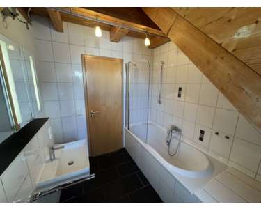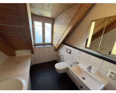 Im oberen Bereich der Wohnung befindet sich der private Rückzugsort. Das Schlafzimmer bietet angenehme Raumproportionen und ausreichend Platz für Bett und Kleiderschrank. Das angrenzende Badezimmer ist mit Badewanne, WC und Waschbecken ausgestattet und präsentiert sich zeitlos gestaltet. Zusätzlich steht auf dieser Ebene ein weiterer Raum zur Verfügung, der sich ideal als Arbeits-, Gäste- oder Hobbybereich nutzen lässt.